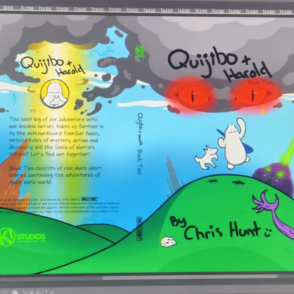 Quijibo and Harold Book Two has begun! Posted on March 17, 2026 By Uncle Chunt Uncategorized Due to how much I enjoyed making the first book, and animating the first adaptation, and positive reviews on Amazon, I’m doing book 2! 10 internal pages and cover locked in already!